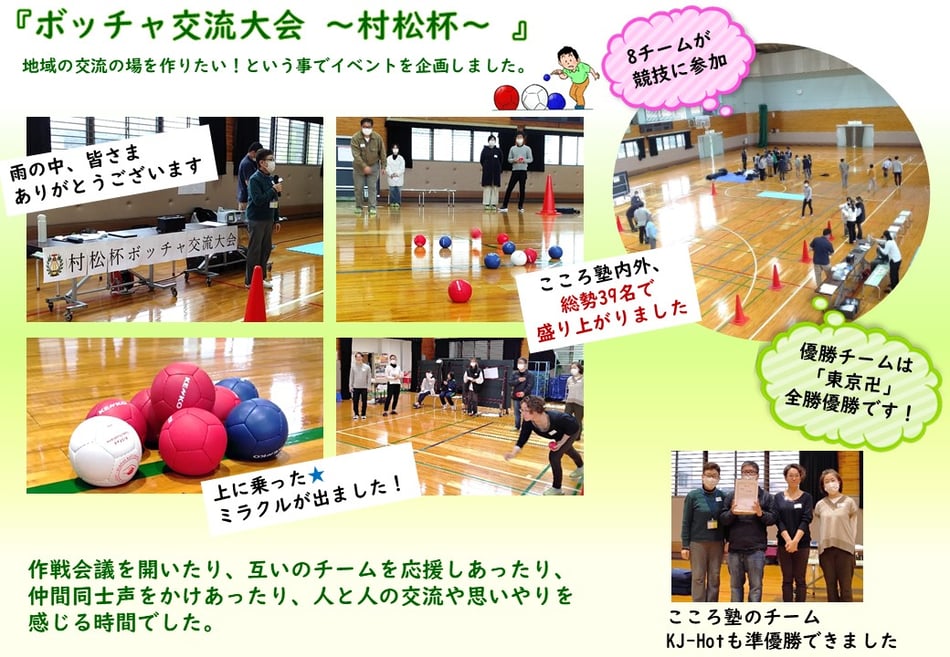 地域の交流の場を作りたい!という事でイベントを企画しました。『ボッチャ交流大会 ~村松杯~ 』です。