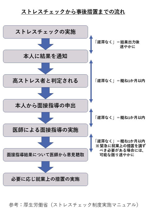 ストレスチェック実施から事後措置までの流れについて図で示したものがこちらです。