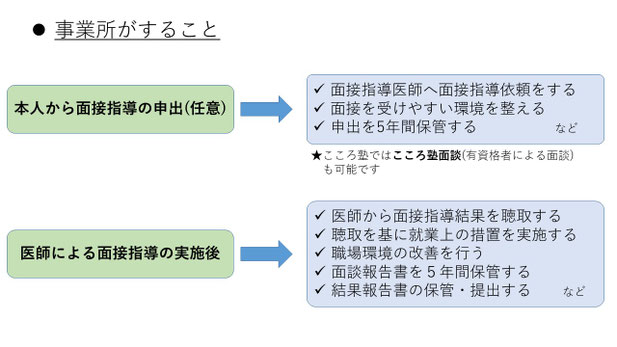 施行はいつからか、対象者は誰なのか、何をすればいいのか、産業医がいない場合の実施者や医師面接をどうするか、集団分析の読み解き方とその活用などをこころ塾と学びませんか。